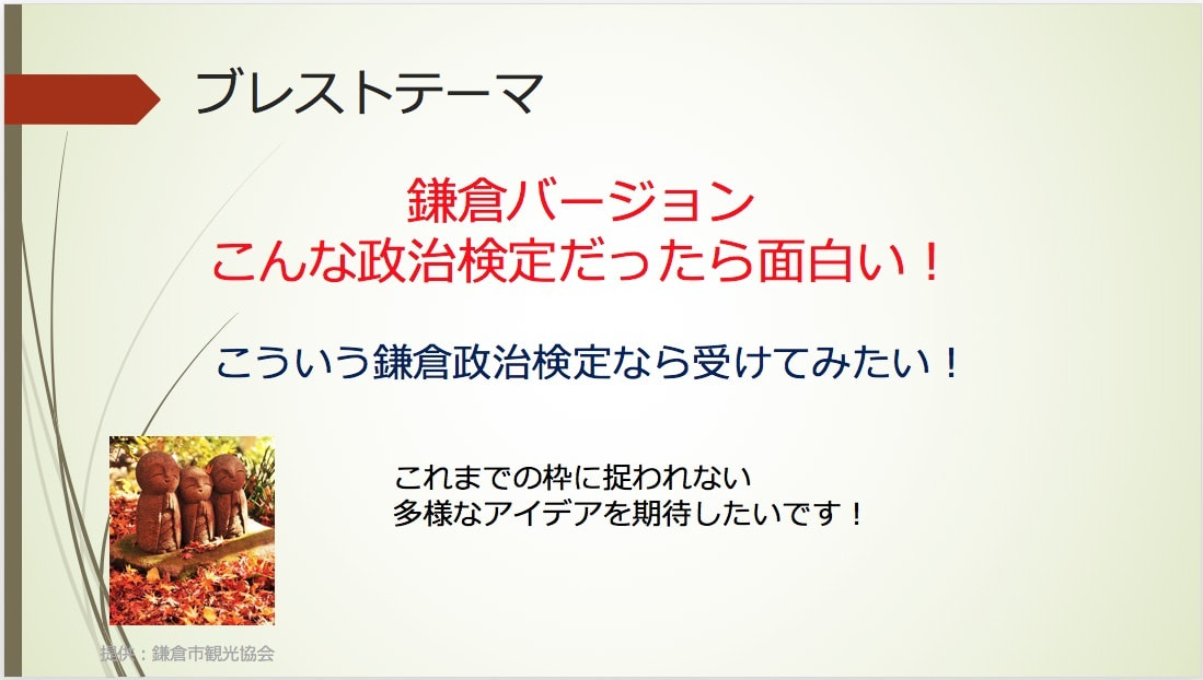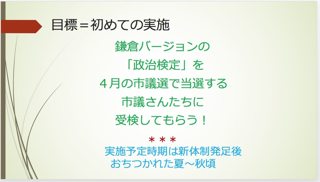 (6)最初の「政治検定」は、この4月の鎌倉市議選で当選なさる市議さんたちに、受けていただきたい。
